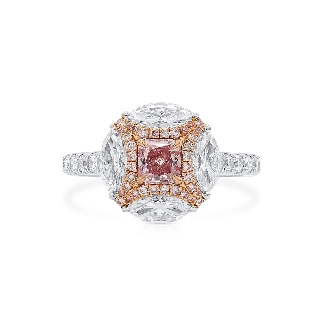 浅粉色钻石戒指,1.93 克拉总重,明亮形状,GIA 认证