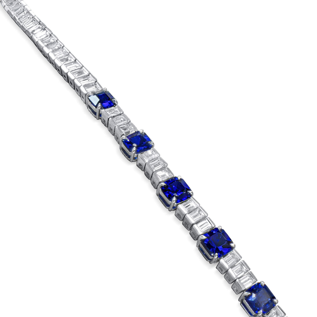 Natural Blue Burmese Sapphire & Diamond Chain Necklace 18K White Gold, 39.01 Ct. TW, unheated