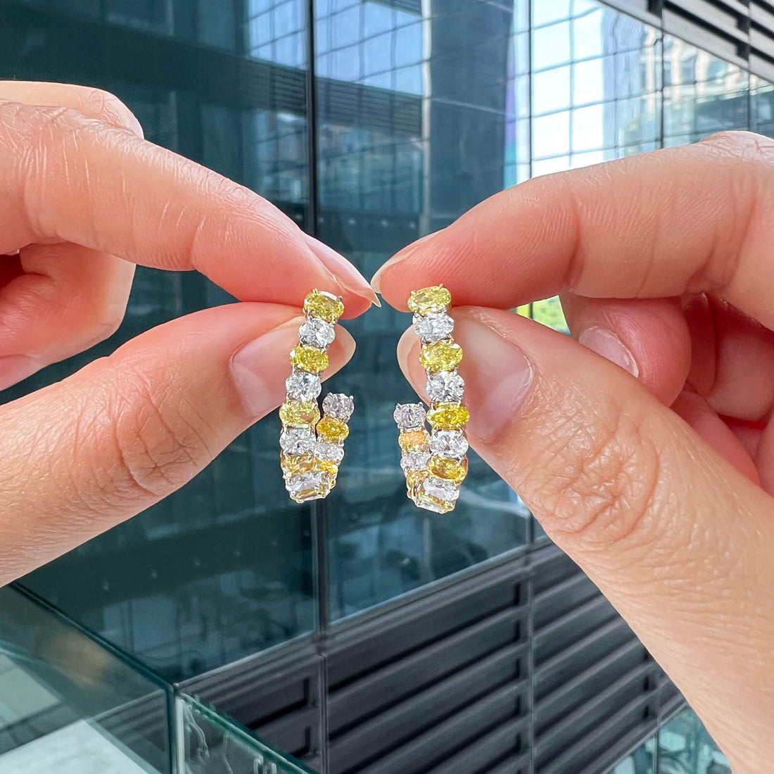 Natural Fancy Yellow & White Hoop Earrings — Oval Shape, 4.80 Ct. TW