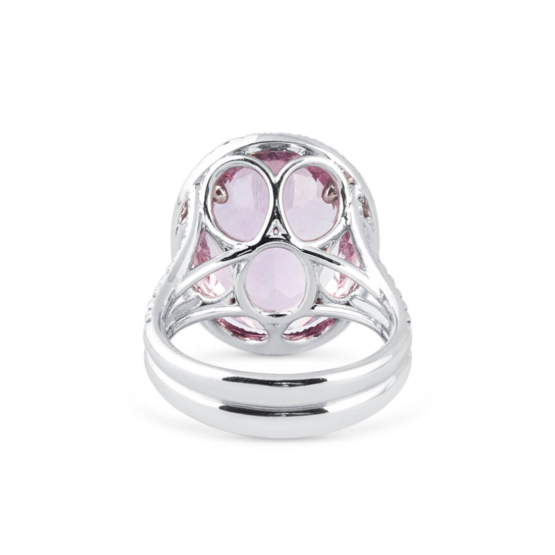 浪漫的 11.08 克拉、椭圆形、粉色、 IGL认证、天然摩根石,镶嵌在18K金戒指上,配以0.88克拉总重、雷迪恩切割、D-F色、VS净度。