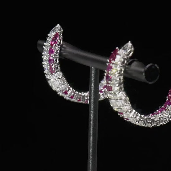 Natural Ruby And Diamond Earrings 18K White Gold, 6.57 Ct. TW