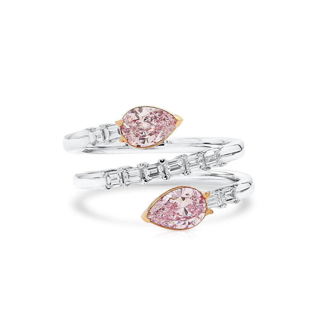 非常浅粉色钻石戒指,1.33 克拉,总重,梨形,GIA 认证