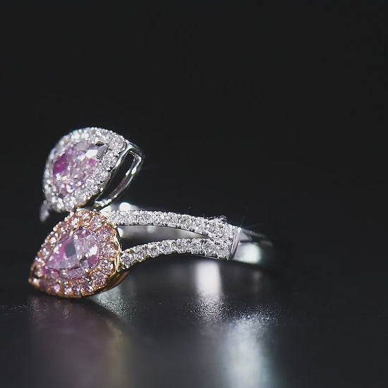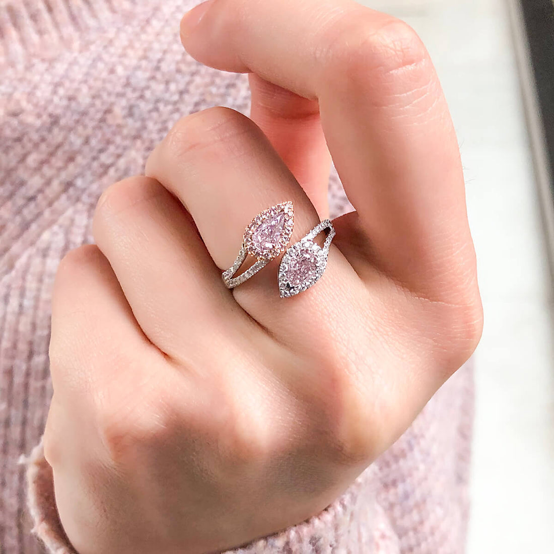 非常浅粉色钻石戒指,1.43克拉总重,梨形,GIA认证