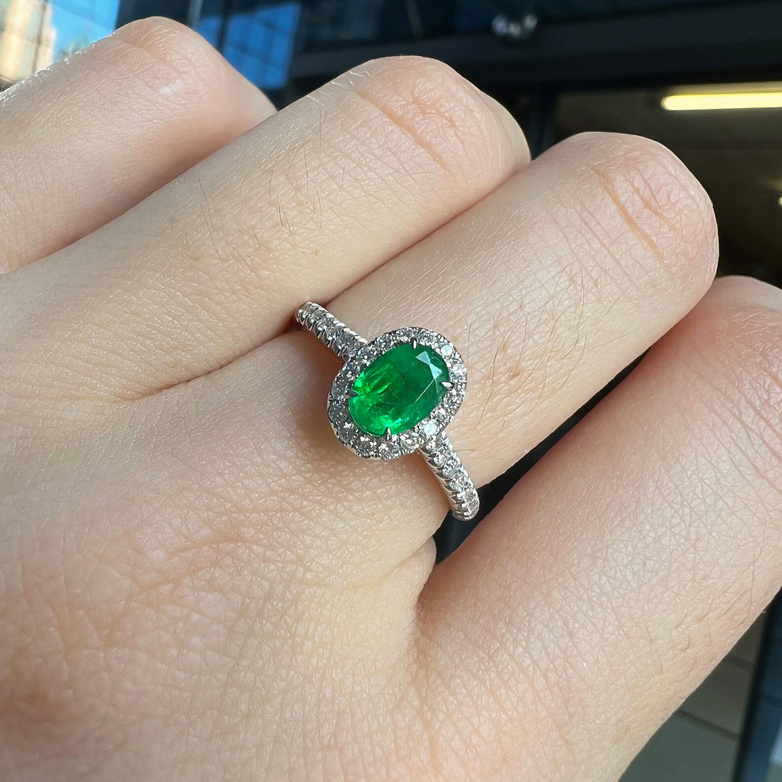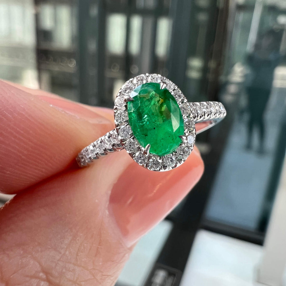 鲜艳绿色祖母绿和钻石戒指,0.49克拉(0.75克拉总重),G2112020311