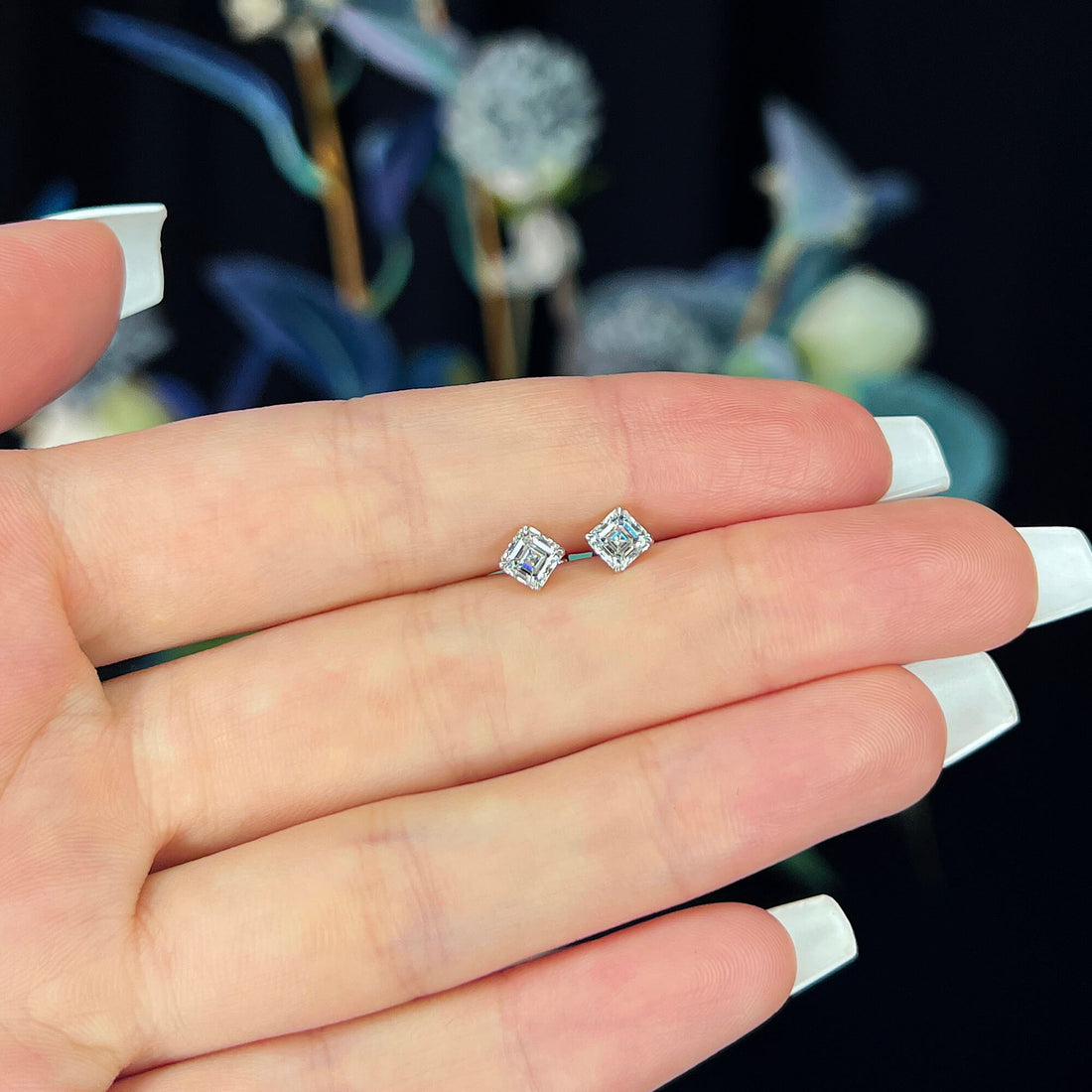 白色钻石耳环,1.00 克拉总重,阿斯切形状