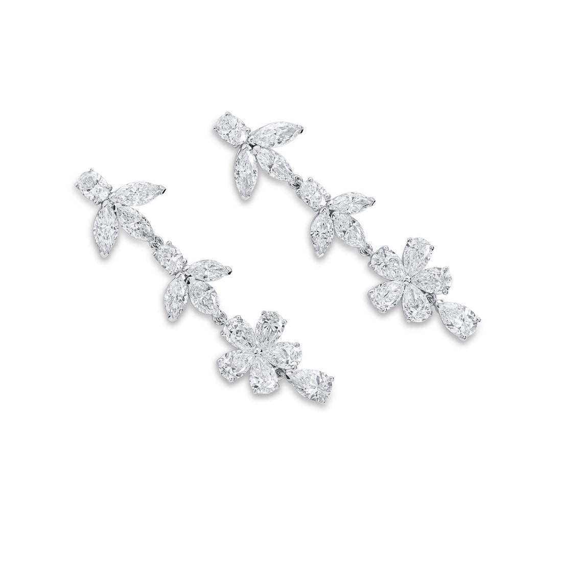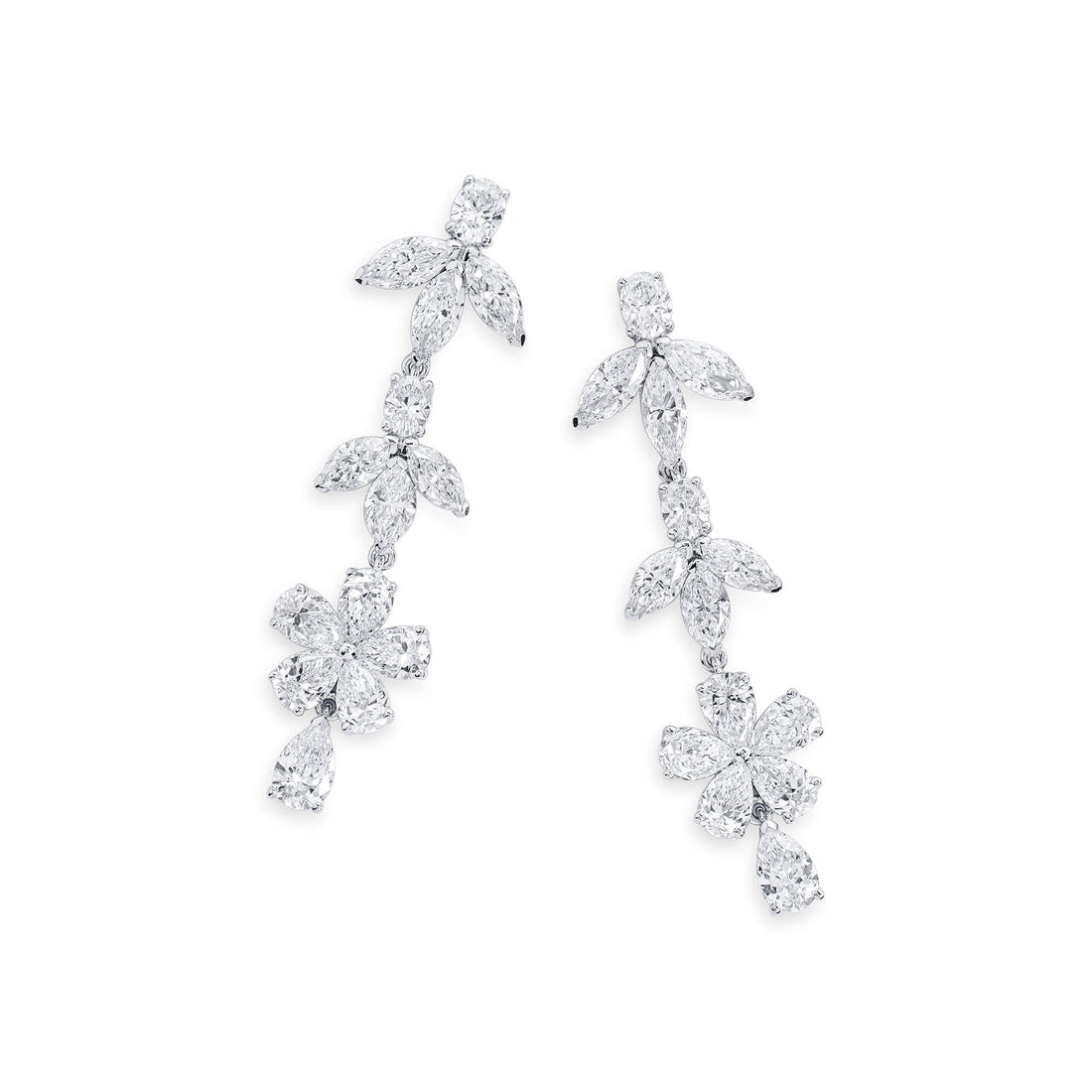 佩戴我们惊艳的天然钻石耳环,更显您的优雅气质。这枚令人心动的杰作镶嵌着28颗精美绝伦的白钻,形状各异,令人叹为观止。这些钻石总重5.92克拉,色泽从D色到G色,净度达到VS级,散发着令人着迷的光芒,与18K白金的镶嵌工艺相得益彰。精妙的造型搭配精湛的工艺,使这款耳环成为永恒的珍品,为任何造型增添一抹迷人光彩。