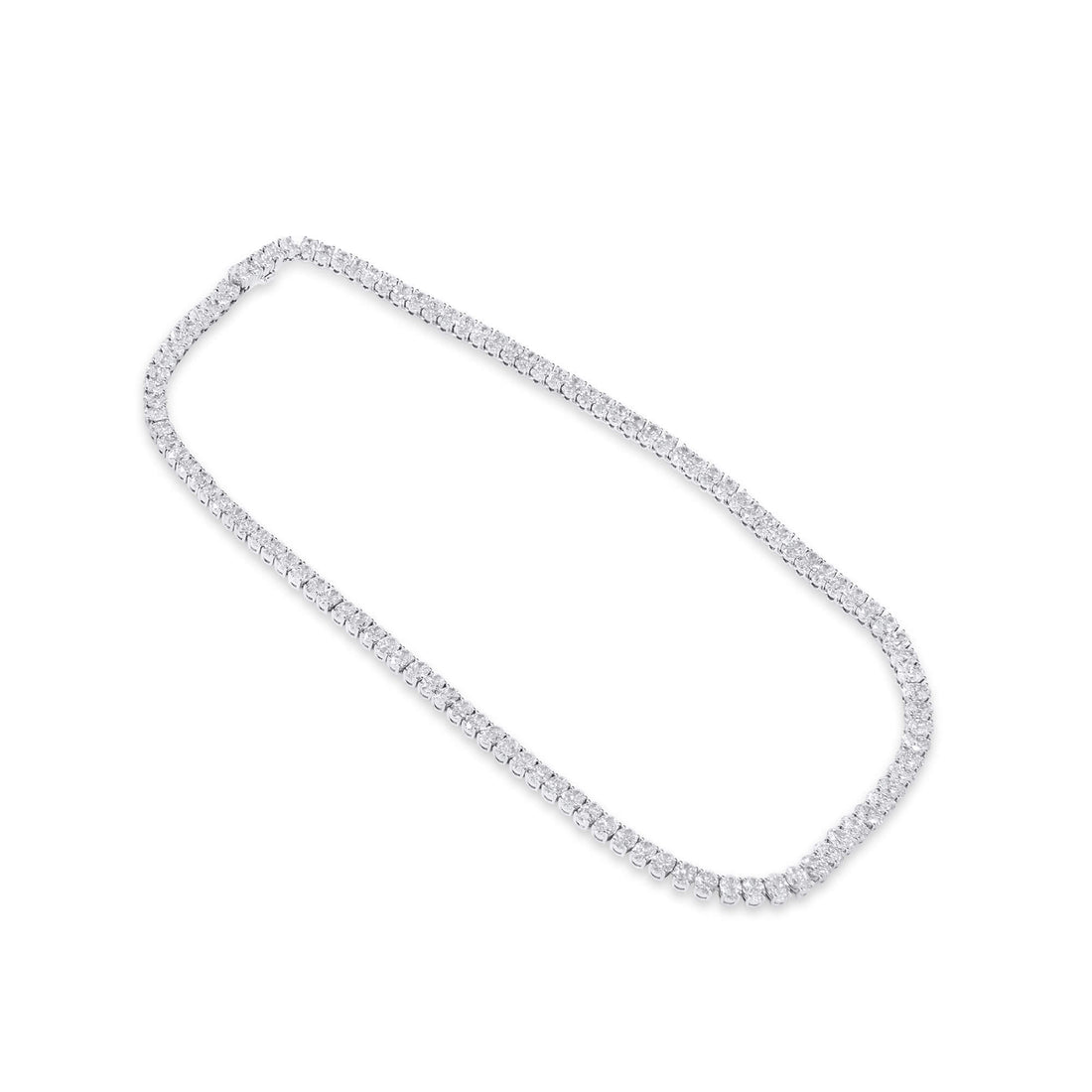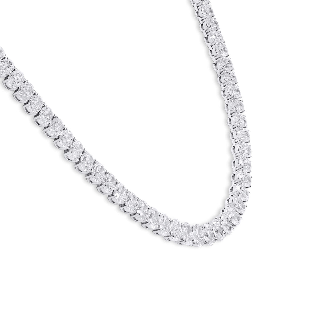 以我们天然白钻项链的奢华魅力,为您的装扮增添风采。。这款项链镶嵌一颗28.35克拉的椭圆形白钻,拥有D-F色和VS净度,令人惊艳。这款项链镶嵌在优雅的18K白金中,经典的设计散发着精致与魅力,是任何场合的完美点睛之笔。尽情欣赏这款精美项链的璀璨光芒,它是精致优雅和精湛工艺的典范。